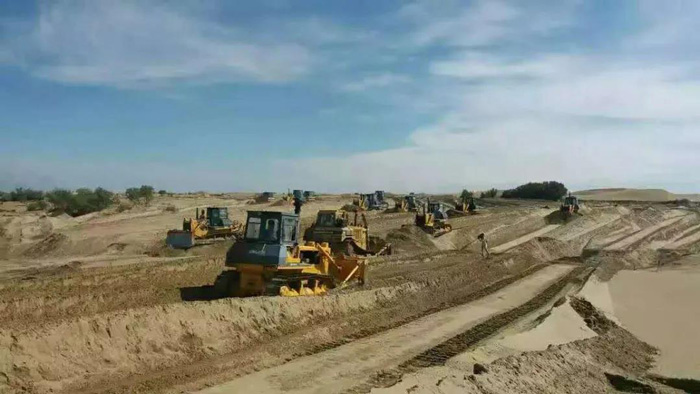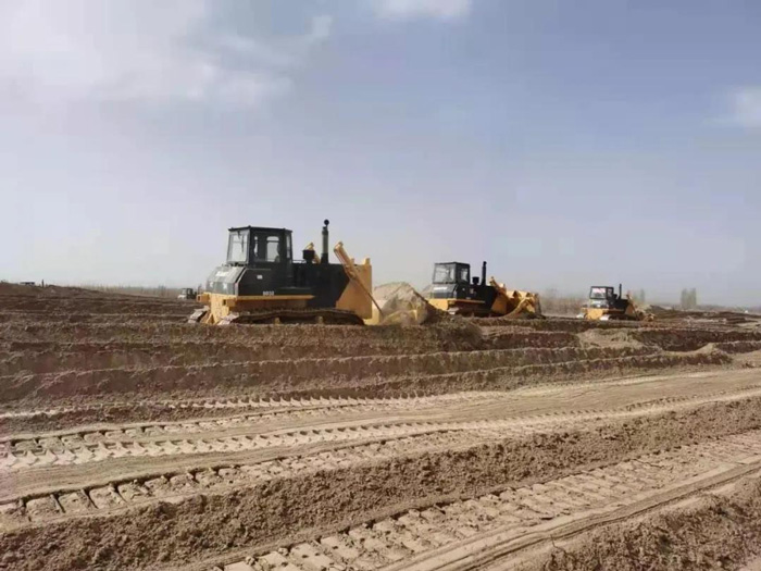 项目施工方考虑到沙漠恶劣的施工环境,经过多方比较,最终选择K8凯发推土机、装载机、平地机一体化产品机群作为项目施工的“主力军”,承担治沙平整土地、土方施工作业。K8凯发也不辱使命,凭借出众的施工效率、稳定的产品性能、及时的售后服务保障,确保项目进度顺利进行。