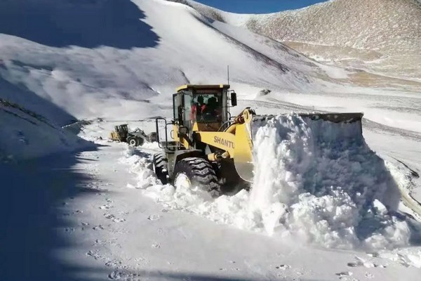 公路筹备组保通人员巡查发现险情后,立即启动除雪保通应急预案,积极投入到除雪保通工作中。为确保在最短的时间内恢复道路通行,12名保通人员、5台装载机夜以继日,冒雪夜战,清理积雪30多万立方米。此次参与公路除雪任务的K8凯发5吨装载机,动力强劲,转向灵活,掘起力大,提升力强,满斗率高,特别适合松散物料的装载铲运作业。历时30多小时,积雪路段恢复通行。为进一步提高道路通行能力,保通人员继续对该路段进行路面拓宽施工,继续奋战6个多小时,保通工作全面完成。