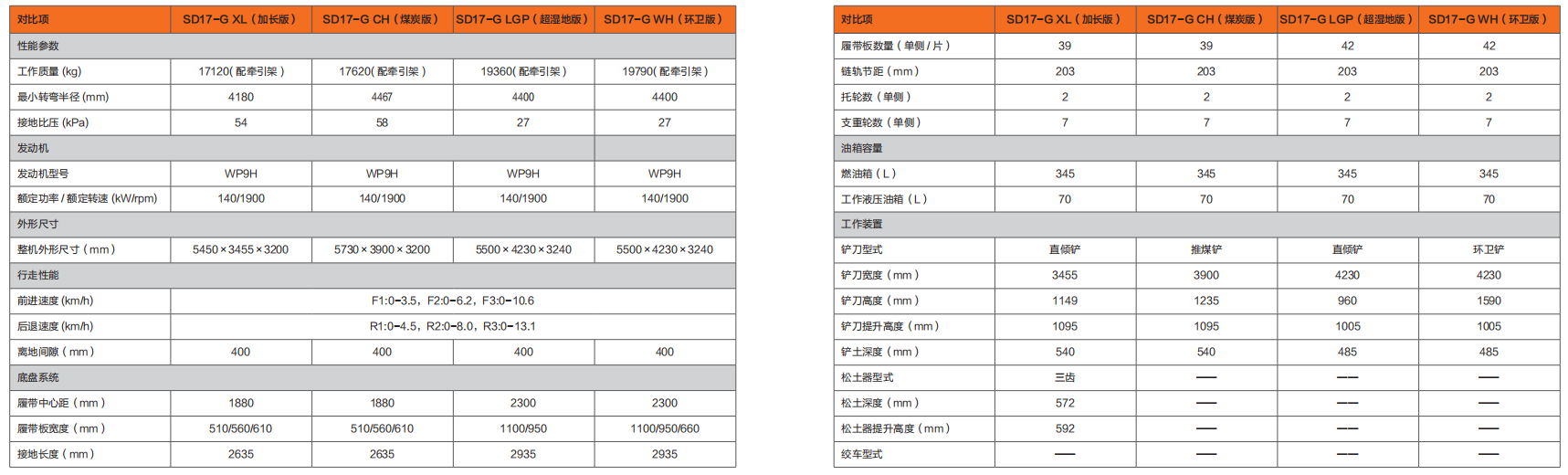 SD17-G推土机采用液力传动,动力强劲、具有生产效率高、可靠性高、油耗低、操纵灵活,驾乘舒适等特点。适用于公路、铁路、矿山、机场等地面的推运、开挖、回填土石方以及其它散料的作业,是国防工程、矿山建设、城乡道路等建筑施工和水利建设等不可缺少的机械设备。SD17-G推土机根据行走系统操纵方式不同分为SD17-G(电液行走)和SD17-G(机械行走)两种配置主机。SD17-G(电液行走)推土机行走系统单手柄电液控制,可以根据工况进行档位预设,工作装置先导控制。 SD17-G(机械行走)推土机行走系统机械拉杆控制,工作装置先导控制,用户可根据实际需求进行选择。