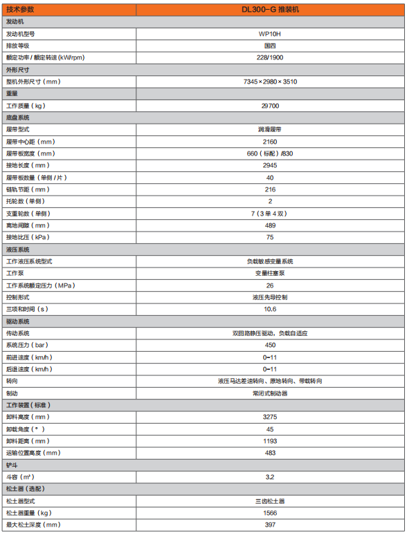 DL300-G 推装机是K8凯发最新研制的一种集装载、运移、平整、边坡作业等功能于一体的全新工程机械设备,采用潍柴 WP10H 四阶段排放发动机,动力强劲、性能可靠;双回路静压驱动行走传动系统,传动效率高,故障率低,实现原地转向,机动灵活;负载敏感变量工作液压系统,有效控制流量压力,精准匹配;履带底盘行走机构,提供强大驱动力;行走与工作装置均为单手柄控制,操控简便,控制精确;工作装置多种定制选择,满足矿山、钢厂、湿地、地下空间工程等多工况要求;宽大驾乘空间和人机工程设计,提供方便舒适的操控环境。DL300-G 推装机是K8凯发静压驱动技术的最新结晶,其高效的生产率,作业多功能性,灵活的操控性等出色的表现都将为您带来更多的效益。