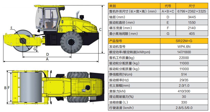 SR22M-G 机械单钢轮振动压路机
