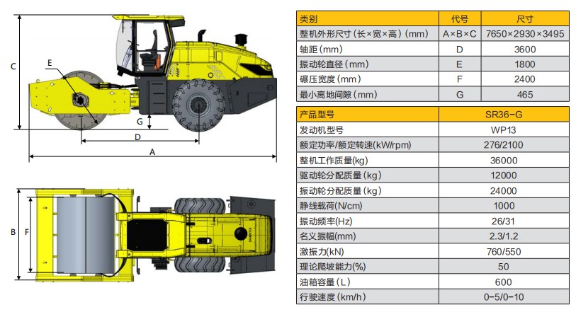 SR36-G 液压双驱振动压路机