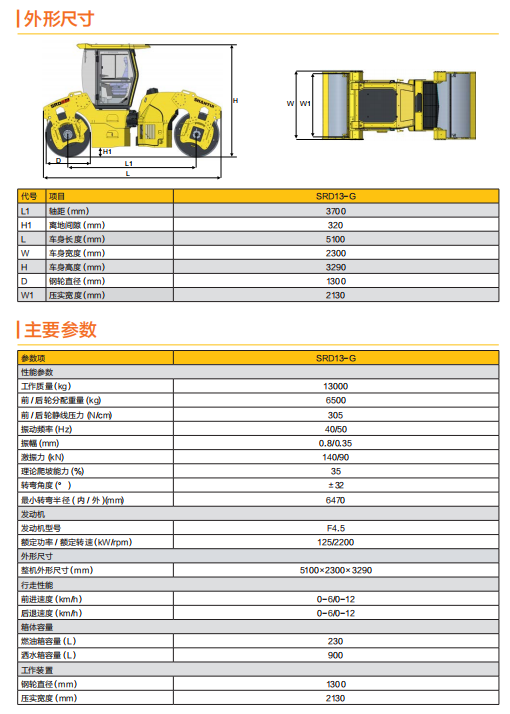 SRD13-G 双钢轮压路机主要适用于压实沥青、混凝土路面铺层,尤其是与摊铺机配合作业,能充分发挥成套设备的生产效率和作业质量,是高等级公路、现代化机场、码头和大型停车场等工程的理想压实设备。